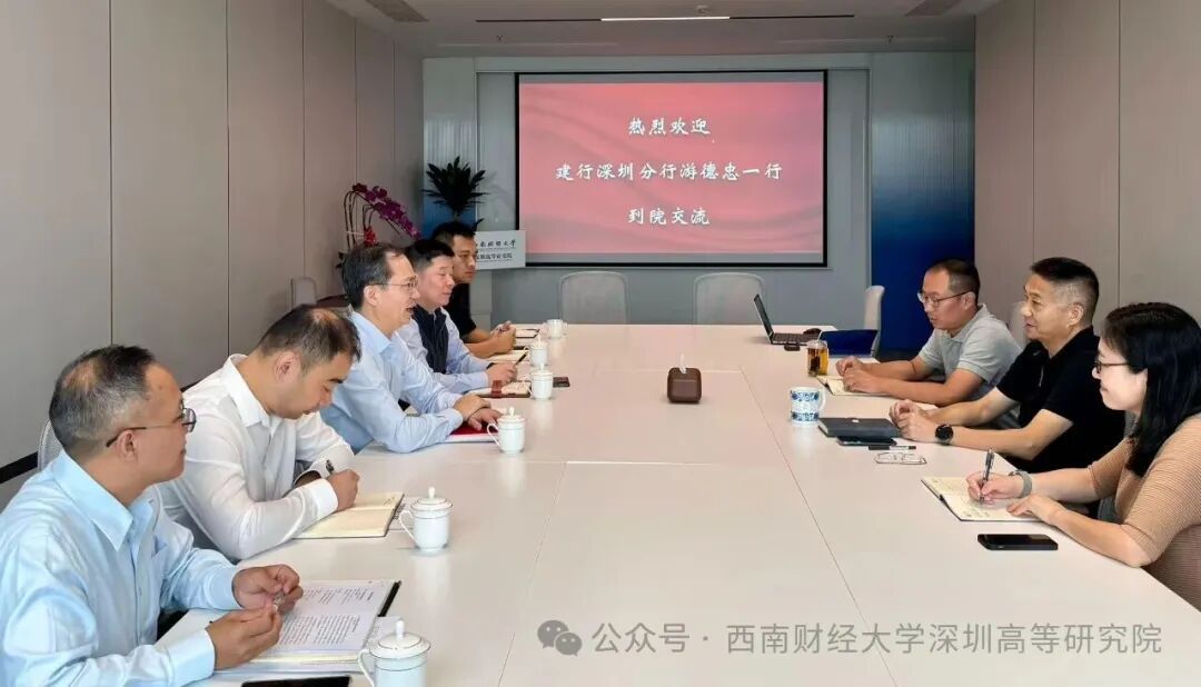 10月21日上午,中国建设银行深圳分行资深副经理游德忠一行,到访西南财经大学深圳高等研究院,双方展开了深入坦诚的交流。